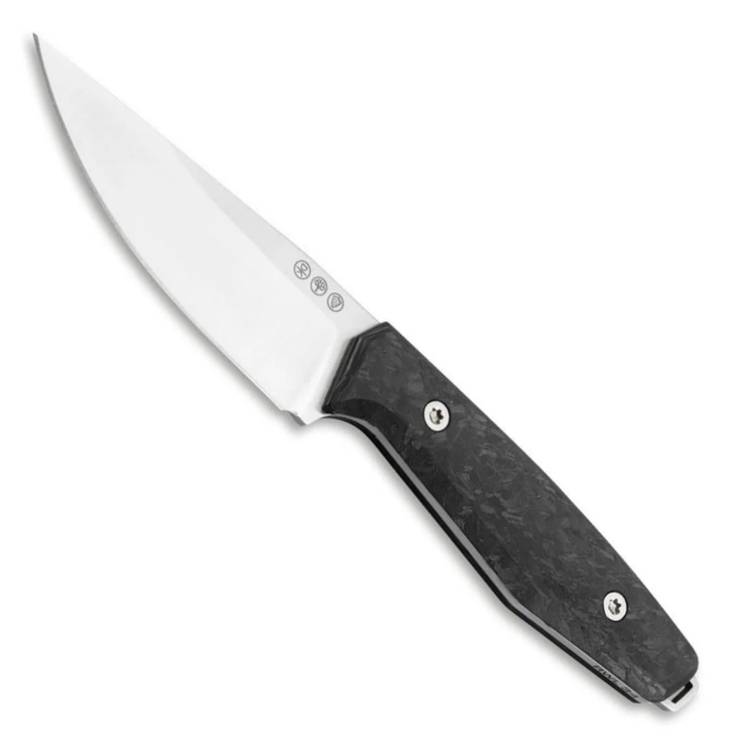 The Boker Daily Knives AK1, developed in cooperation with Alex Kremer and Daily Customs, is a versatile knife created with high-quality materials. The blade of this knife is made of RWL 34 steel, a high-performance stainless steel which provides excellent edge retention as well as incredible corrosion and wear resistance. This fantastic blade is paired with handle scales made of carbon fiber for a comfortable, solid grip. The handle scales can be dismantled with the supplied torx-key and can be replaced by a wide range of alternative scales developed in conjunction with Daily Customs. The lanyard hole at the end of the handle can be utilized for carry or can be turned around when the handle scales are dismantled so that it disappears into the handle. This knife can be modified according to the situation and your own personal tastes, making this the perfect everyday carry.