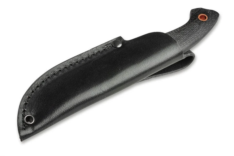 The handy Boker Plus Nessmi Pro owes its name to the American adventurer George W. Sears, who lived in the eastern United States from 1821 to 1890 and wrote books and magazine articles about life in the wilderness under the pseudonym “Nessmuk”. To honour his concept of outdoor equipment that is as lightweight as possible, the Danish knifemaker Jesper Voxnaes has developed this particularly compact version of the Nessmuk knife. The knife, made of D2 in full tang construction, is not only suitable for outdoor use and hunting, but also proves its worth in everyday life. The handle scales made of black micarta and the black powder coating of the blade give the Nessmi Pro a tactical look, while the hollow copper rivets add a colourful accent and also serve as a lanyard hole. Supplied with a black leather sheath.