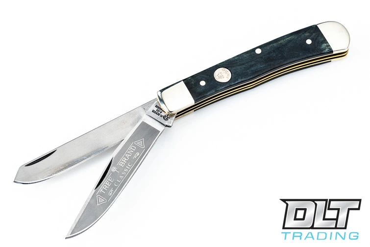 The classic Trapper pattern, featuring carbon steel blades and Buckskin bone handles. Manufactured in Solingen, Germany.